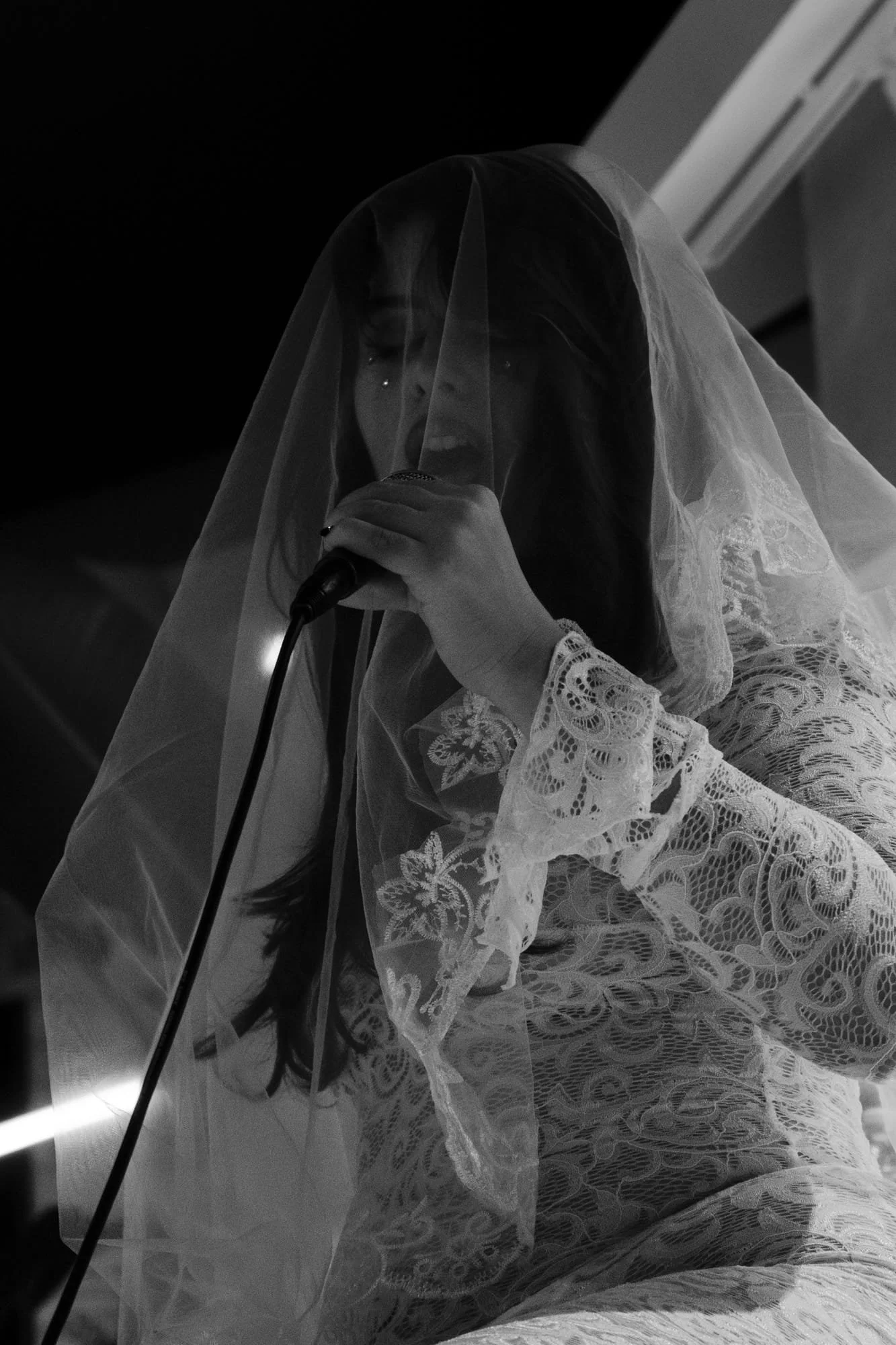 La Sacerdotisa es una pieza performática y musical donde se exploran los arquetipos de La Santa y La Bruja. Propone un espacio ritualistico donde convergen lo real y lo divino